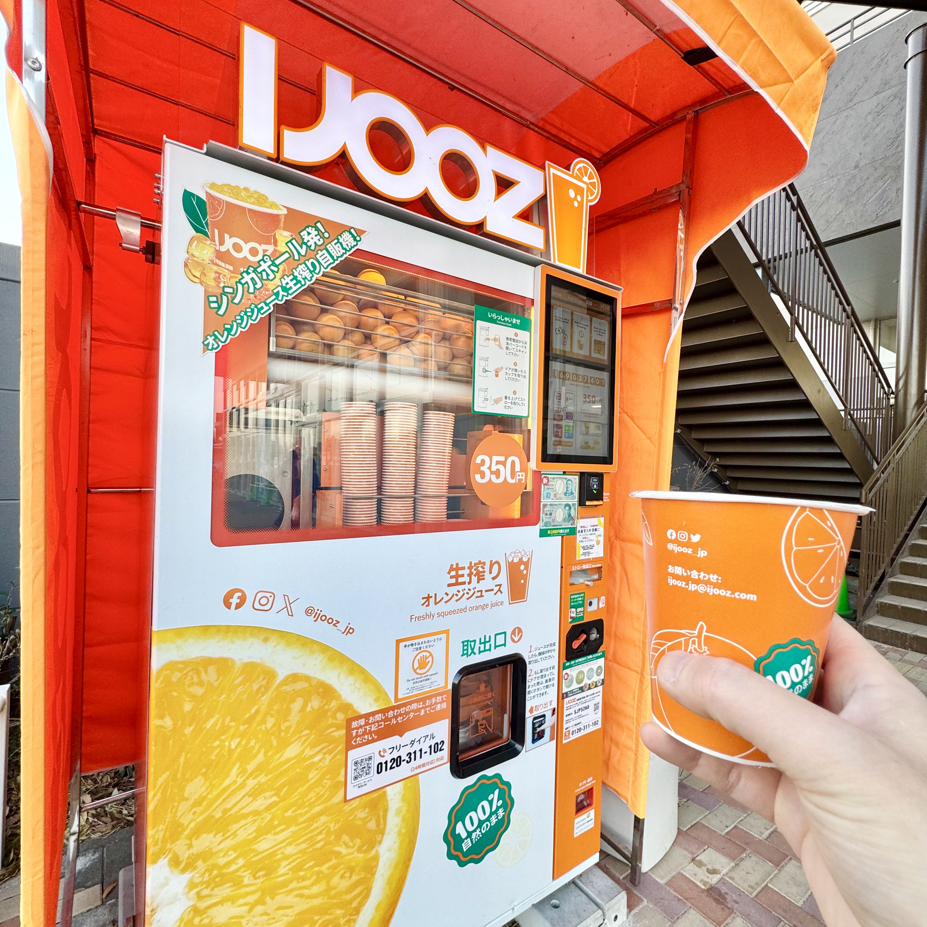前から気になっていたオレンジジュース生搾り自販機🍹
